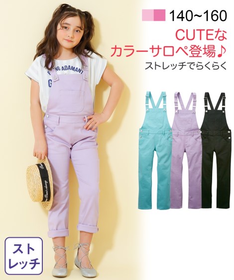 パンツ キッズ ストレッチ カラー サロペット 女の子 子供服・ジュニア服 ボトムス ミント/ラベンダー/黒 身長140/150/160cm ニッセン