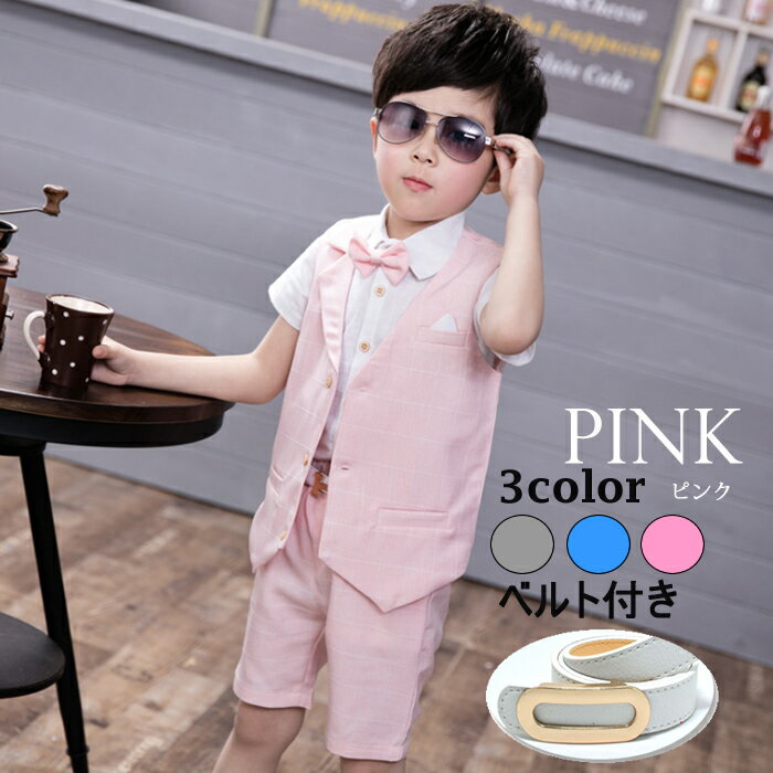 5点セット ベスト 半ズボン シャツ ブルー グレー ピンク 発表会 スーツ 男の子 スーツ キッズ フォーマル 男の子 子供服 フォーマル 男の子 フォーマルスーツ 入学・入園 卒業式